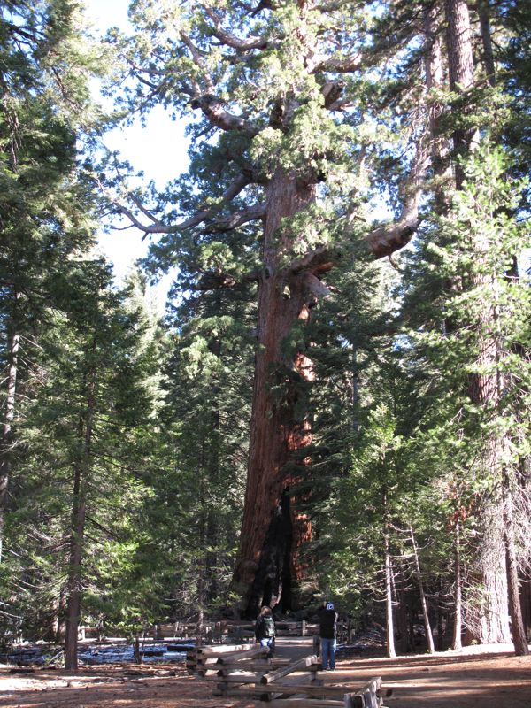 "grizzly giant" — 2,500 to 3,000 years old. the first horizontal branch on the right of the tree is 7 feet in diameter—again, the branch is SEVEN FEET in diameter.