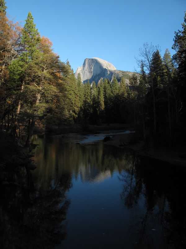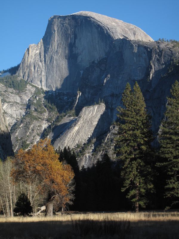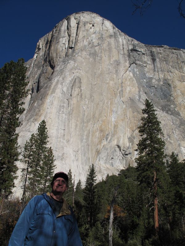 having little else to do one morning i clumbed El Capitan before breakfast. here i am right after my return to the bottom, slightly after lunch. El Capitan is 3,000' from the base to the top. there are at least two teams of climbers on the rock when this pic was taken, but those guys are way too small to easily see with a rock face this large.