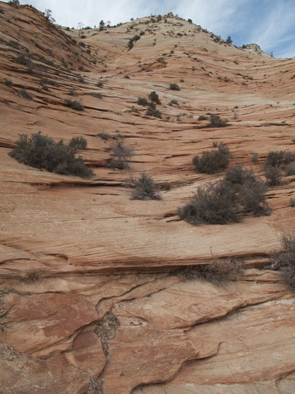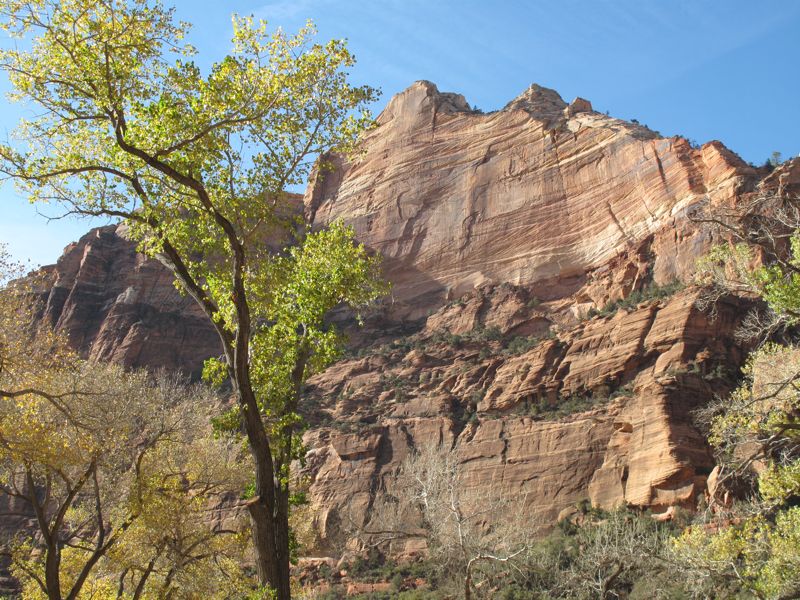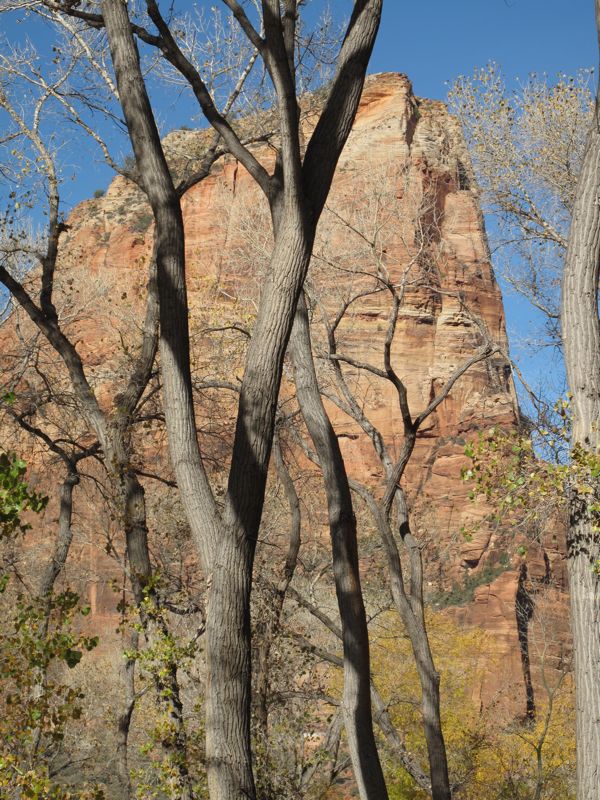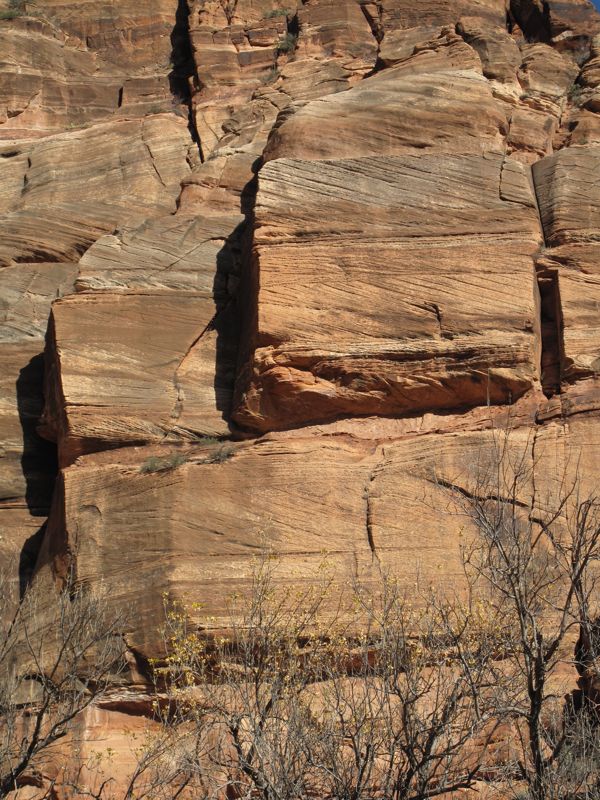 zion is far more interesting than one might think. like denali, the park runs a shuttle bus service and like denali its discontinued during the winter season. as a result you can drive your own vehicle into the park which is what i started to do. but after a mile or so i realized that there are very few places to park when one sees a “wow i need to take a pic of that”. i backtracked a mile and found a place to park and took down my bicycle and rode into the park which allowed me to stop anywhere and snap away with the camera.