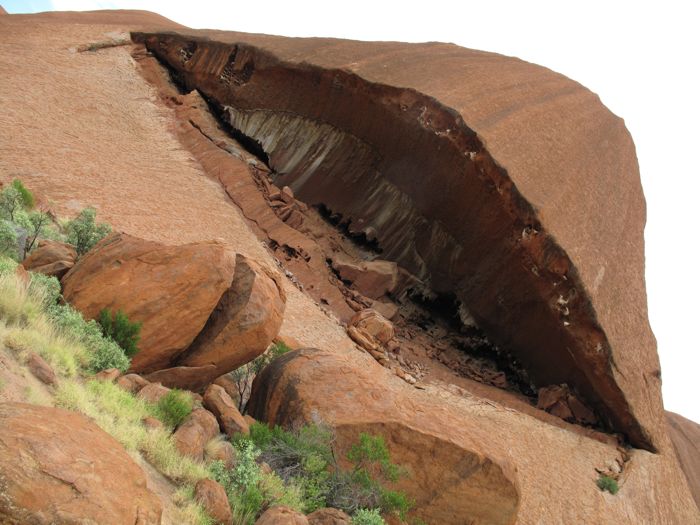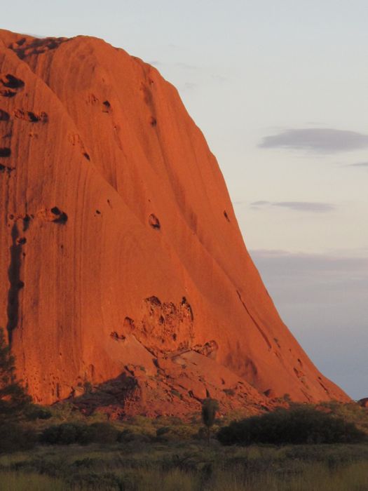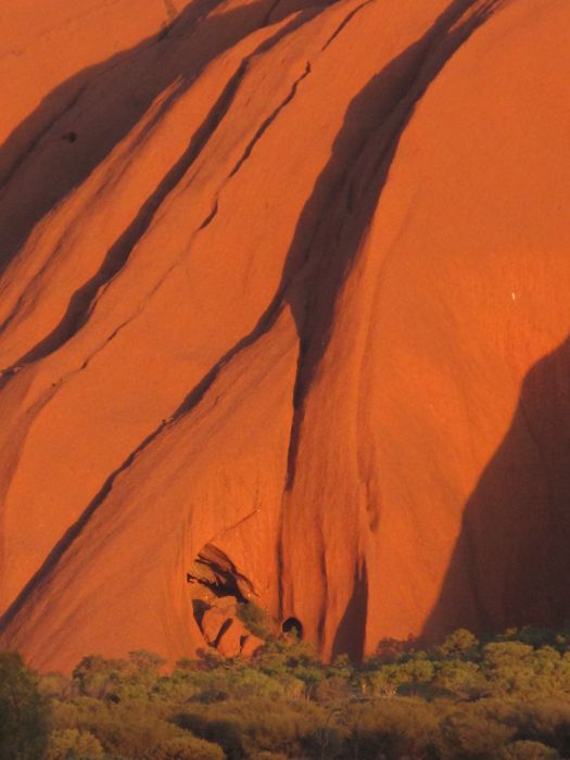 uluru is a strange thing to approach. from a distance it looks really interesting. as you draw closer, it doesn’t seem all that impressive. but, once you get to within a klick or two of the place you begin to see the wonder of it. then when you are at the base of it, the mood changes again to one that goes beyond wonder. not too difficult to imagine or understand how the native peoples here ascribed powerful myths to the place.