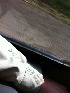 In Kenya, like the UK, vehicle registration numbers (license plates) are assigned once and remain with the vehicle forever. The numbers shadowed on my sleeve are from the etching on the window and are the vehicle’s registration number. The numbers appear on all the windows and mirrors. Evidently stolen auto glass was a big problem.