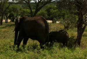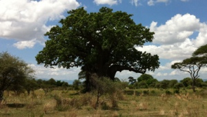 Elephants and baobab trees in Tarangire NP. During times of drought the baobab tree drops all it’s leaves after sucking the water back into its trunk. The tree is fibrous rather than woody. The elephants take advantage is this by tearing huge holes into the trees to get at the fiber and water. During times of plenty the elephants love the leaves. So, you never see a baobab tree with branches shorter than the largest elephant can reach.