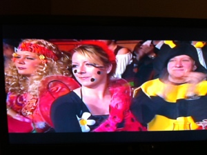 It might just be the season, but the Germans really seem to like a costume party. The TV shows parades during the day and drinkfests at night. The place I’m at has 20 channels on the TV machine. Two are foreign. Of the 18 German channels 3 of them are broadcasting different costume parties.