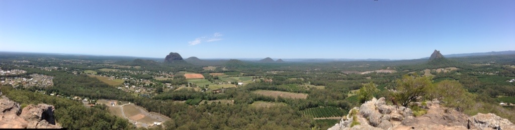 I did some tramping in Glasshouse Mtns NP. Pics below are from one such. It was a Sunday and there were a bunch of people on the trail. So, not very secluded. The mountains (hills) are remnants of volcanoes. When Captain Cook, same guy the Alaska’s Cook Inlet is named after, first saw the mountains (hills) from his ship they reminded him of the glasshouse chimneys of where he hailed from back in jolly old England.
