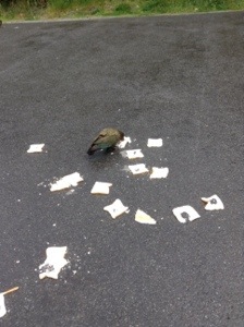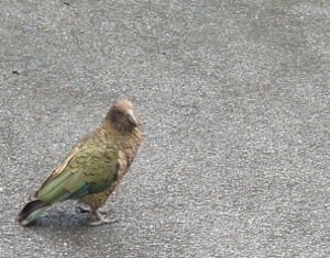NZ’s Kea mountain parrot. Just about the same size as an Alaskan raven. And just about as big of a PITA. Except maybe more so as they no fear of humans. Noted for their destructive behaviors of pulling apart windshield wipers and car door weatherproofing. They ask people not to feed them, so, of course, people feed them.