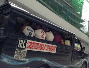 “Jeepneys” are the primary intra-city transport for the masses. They are of dubious construction and maintenance. Run by a driver and a conductor who announces stops, collects fares, advertises. As the day wears on, both are sometimes under the influence of shabu—methamphetamine. (Gotta stay awake somehow…)