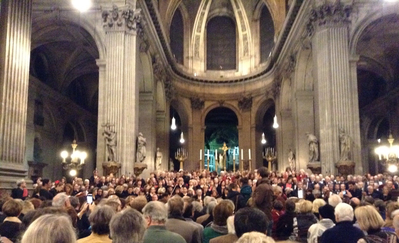 At St. Sulpice for Handel’s Messiah. Pretty poor acoustics, but it’s a church not a concert hall. Still, a little staging would make a big difference. Many many mistakes—missed notes and the occasional screech coming from someplace. Still, worth the effort.