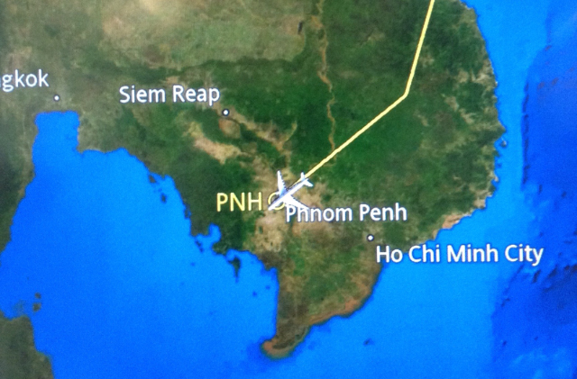 Nowhere near Ukraine. Like ships planes take Great Circle routes. So, France, Germany, Poland, Russia, Mongolia, China. But no Ukraine. Besides I doubt any airline is flying over eastern Ukraine any more.