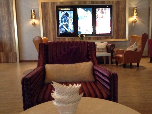 The seats in the theater are large, leather, have electrically operated footrest and reclines to 75% of fully flat, complete with a pillow and blanket, and, oh yes, it comes with a waiter who brings you free popcorn and coke.