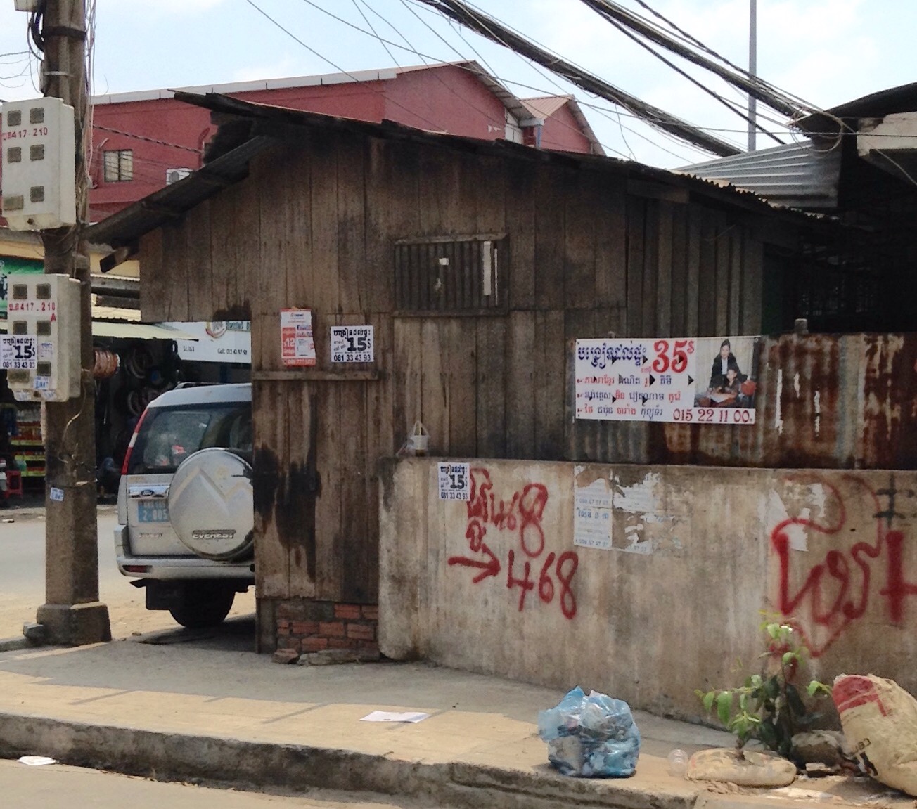 Perhaps an “original” structure from before Phnom Penh’s explosive growth. Notice the red brick foundation.