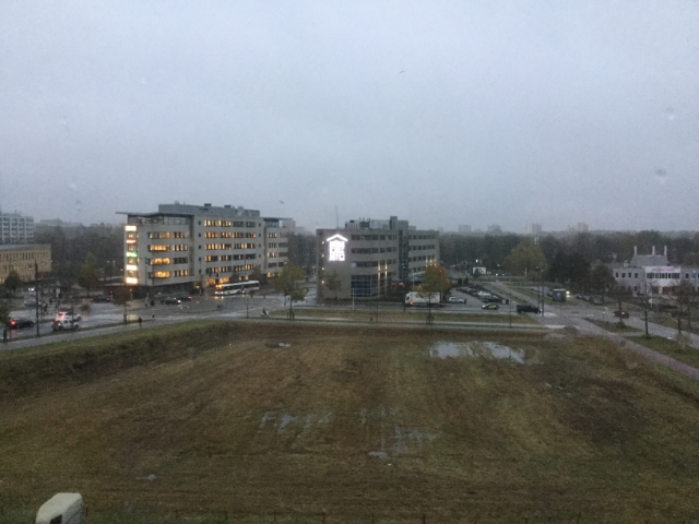 The rainy view from and of my “executive” suite, free upgrade.