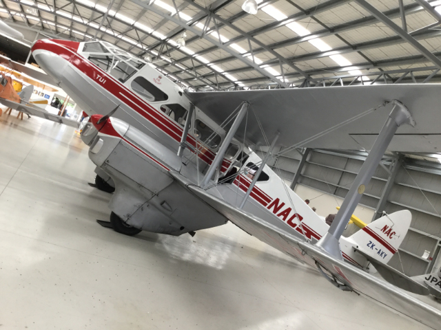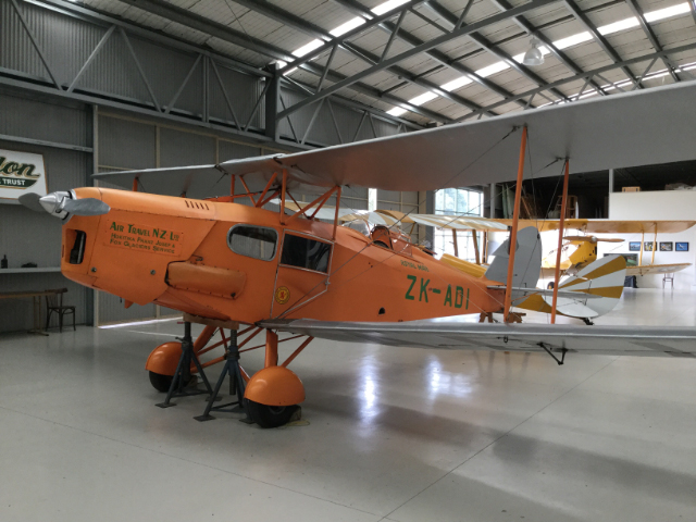 Virtually all the planes are still flyable. You can get a 15 minute flight in a Tiger Moth for $150 NZD. The large white with red stripping NAC plane can be chartered. The orange biplane has seating for 4 in the nose for scenic flights. The cockpit photo shows a circular window connecting the pilot with the passengers. The window can be opened so the pilot can talk (yell, as the passengers are directly behind the engine) to the passengers.