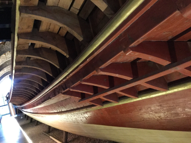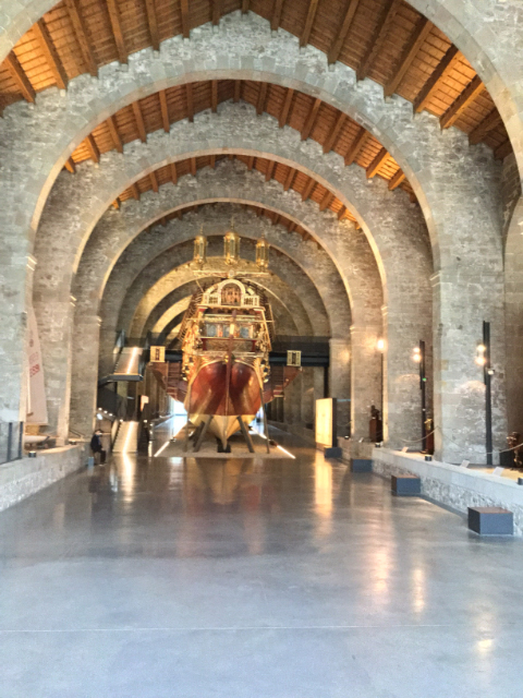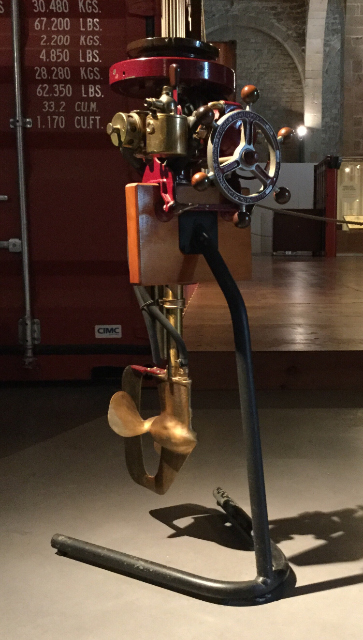 Maritime museum… Included a real live, reconstructed Spanish galley, and, other nautical themed objects, including this 1913 outboard, complete with a tiny ship’s wheel to steer by.