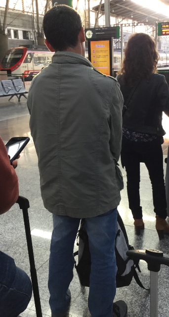 Crazy guy in front of me waiting for the train north from Malaga: