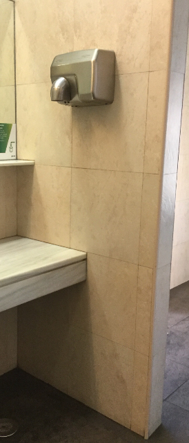 Hand dryers are mounted quite high in Spain. But, even this one, at 6′ above the floor seems odd.