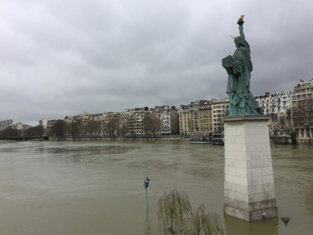 Lady Liberty keeping her feet dry while her island, not so much:
