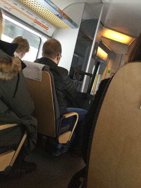 Train from the airport into town. Notice the birch plywood seats. I’m thinking they like wood hereabouts.