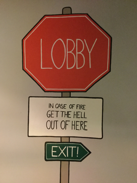 I’m staying in a hip hotel. How do I know it’s a hip hotel? First, you check yourself in; second housekeeping only comes around every fourth day; and, third they have hip signs like this: