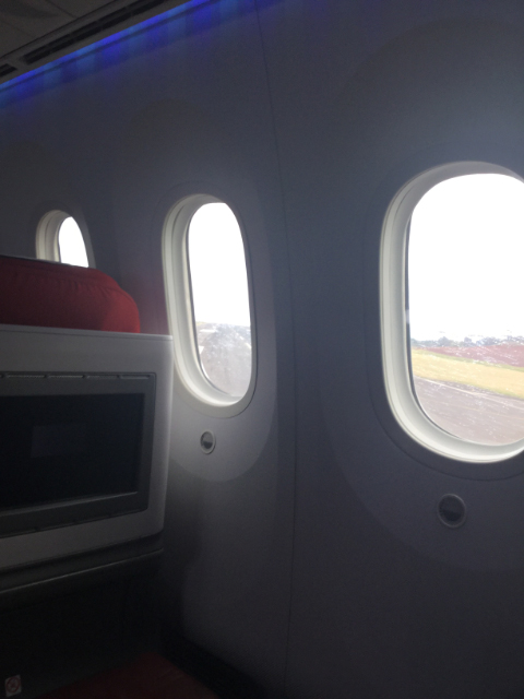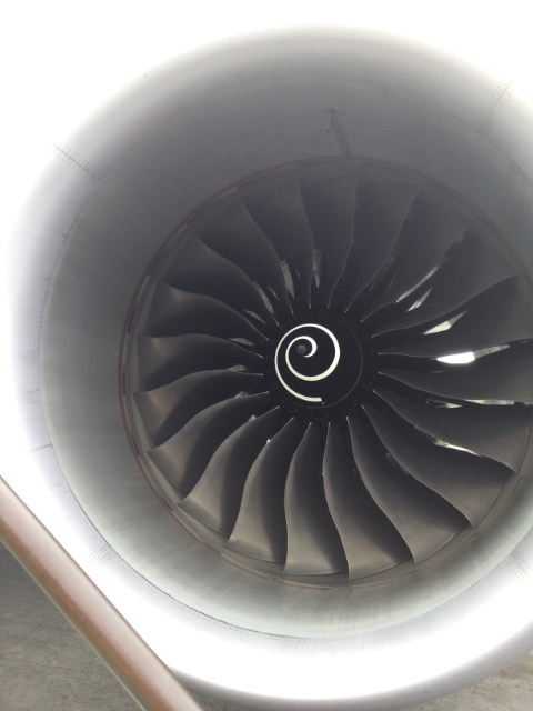 Then there is the fact there is no jetway, one gets on and off using the shaking portable stairs. Advantage of this is that you get a good look at one of the Rolls Royce Trent 1000 engines that power this machine. They are only $41 million each and push out 60,000 pounds of thrust and have a nearly 10′ diameter.