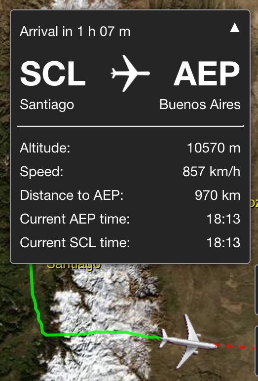Interesting flight path from Santiago to buenos Aries. Left Santiago and proceeded due south for 20+ minutes. We didn’t begin our turn east until we hit 21,000’.