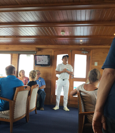 The boat could carry 36 passengers and had 15 crewmen. Each day we’d get a briefing about the next day’s activities. Each day we’d be ferried in zodiacs to landings on the various islands or to locations to snorkel off the zodiacs. There were 2-4 outings each day: