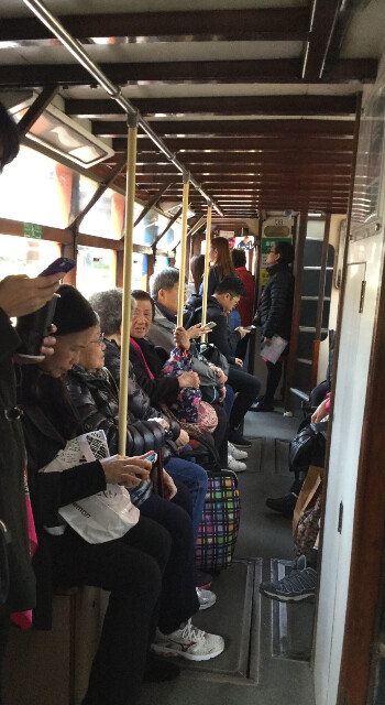 The good, riding the Ding Ding (Hong Kong’s tram system.) Cost? Thirty-three cents! If it’s a five minute ride or a one hour ride, the price is the same. They have some newer tram cars, but my favorite are the old wooden ones with low ceilings — a guaranteed head bumper for anyone near 6′ in height. Riding with the locals:
