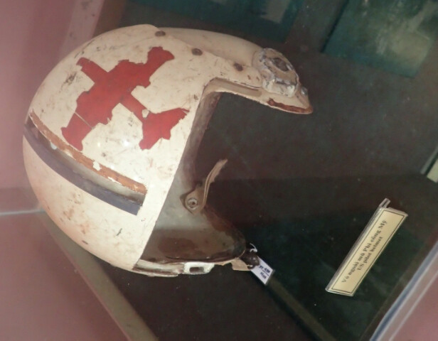 The back of the helmet appears to have blood stains.