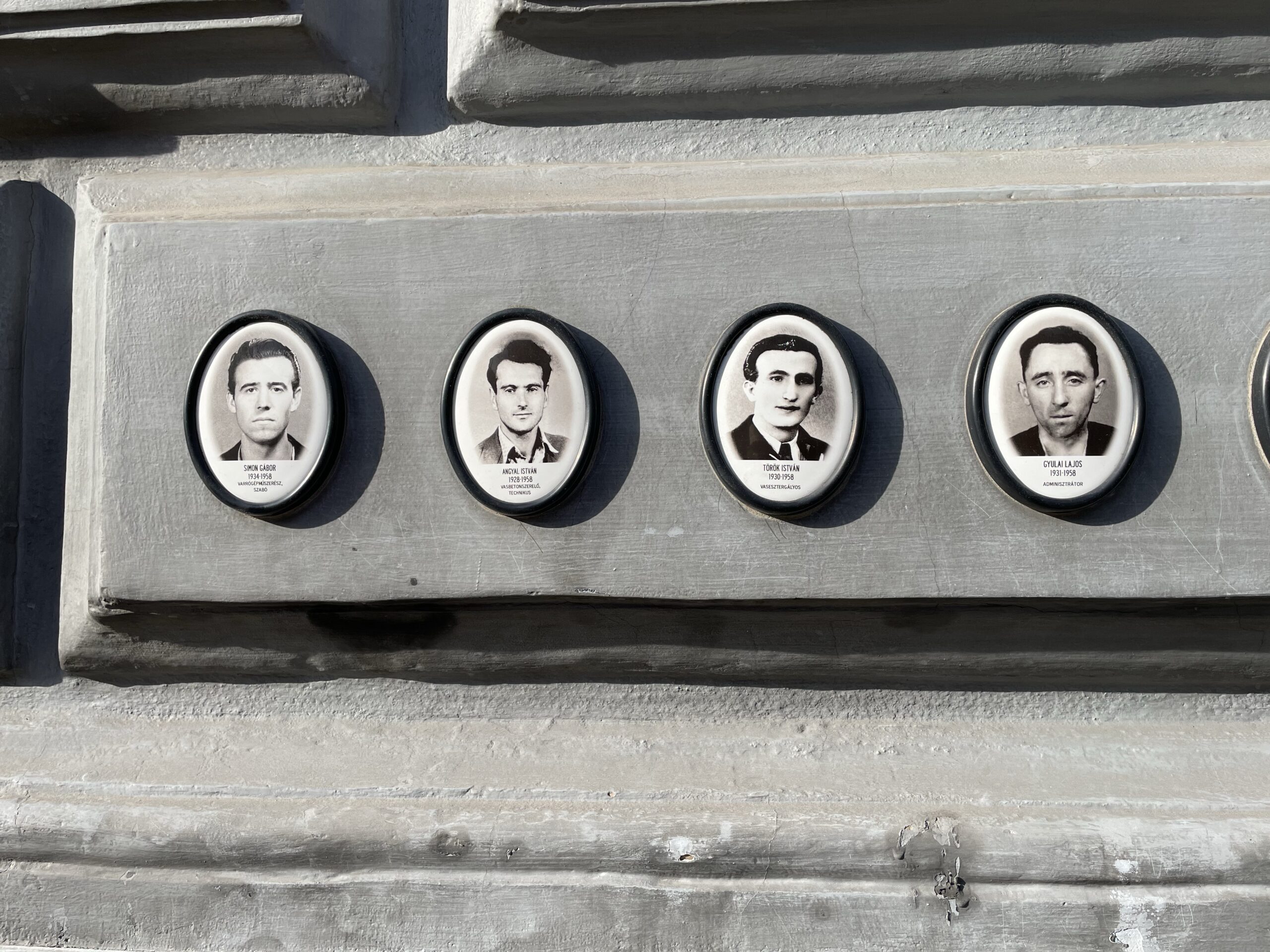 Alas, Budapest’s “House of Terror” is closed for maintenance. But on the outside they have a bunch of these little cameos of former victims.