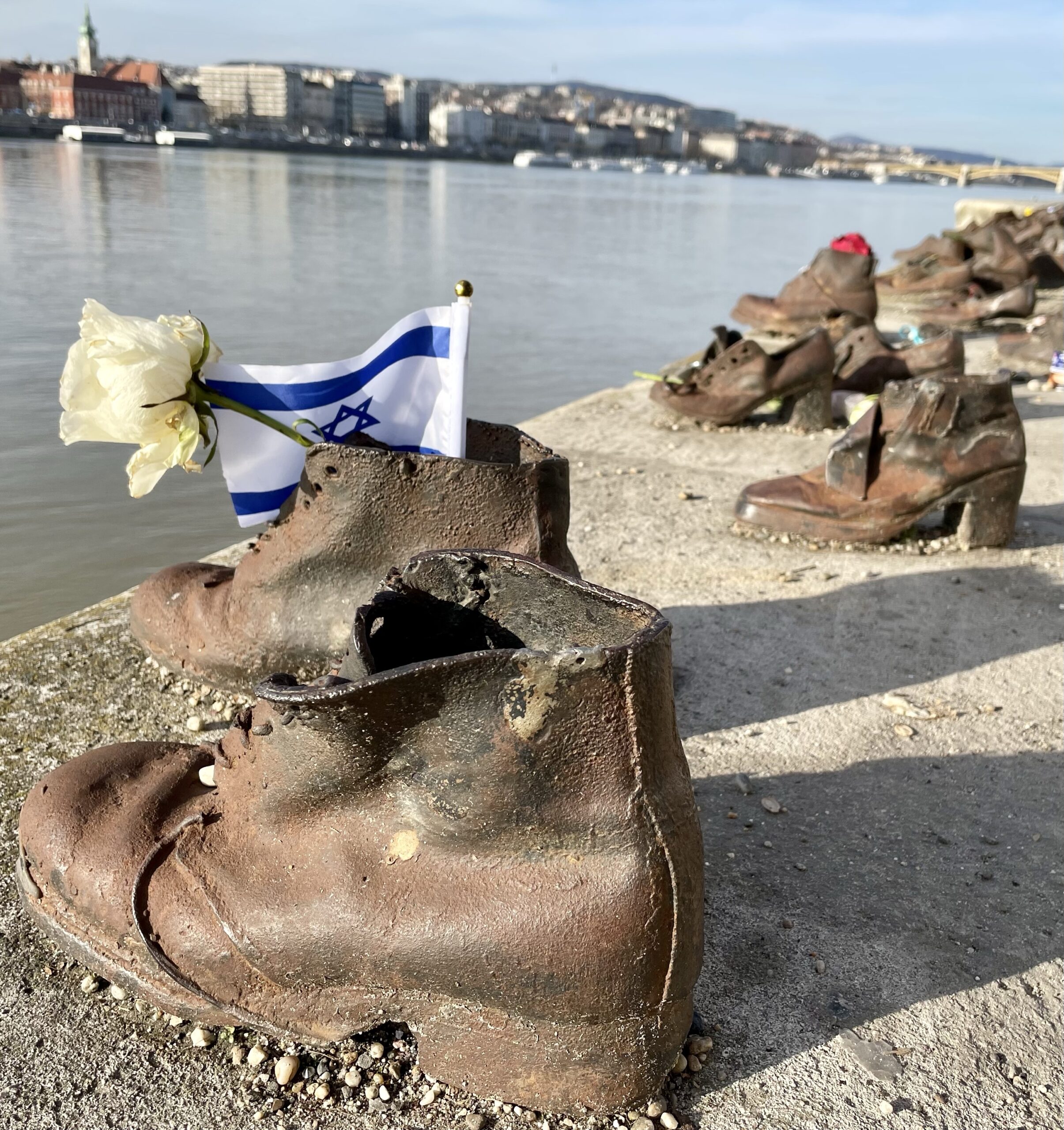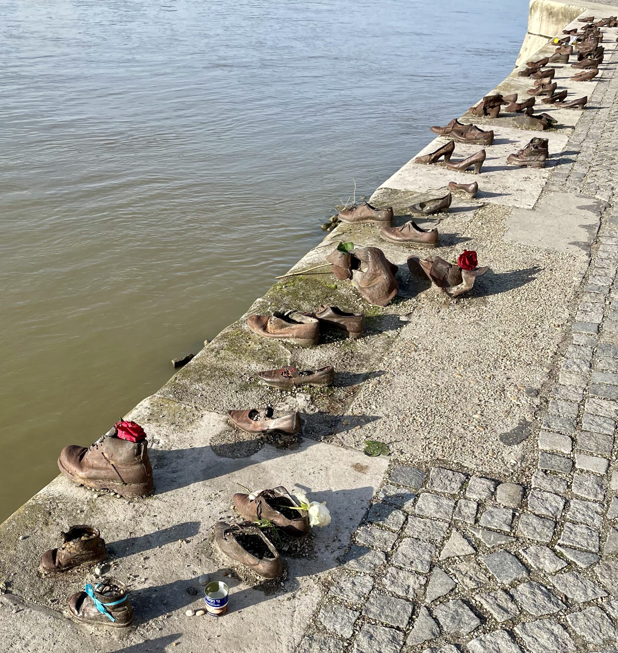 “Shoes on the Danube Bank…to honour the Jews who were massacred by fascist Hungarian militia belonging to the Arrow Cross Party in Budapest during the Second World War. They were ordered to take off their shoes (shoes were valuable and could be stolen and resold by the militia after the massacre), and were shot at the edge of the water so that their bodies fell into the river and were carried away.”