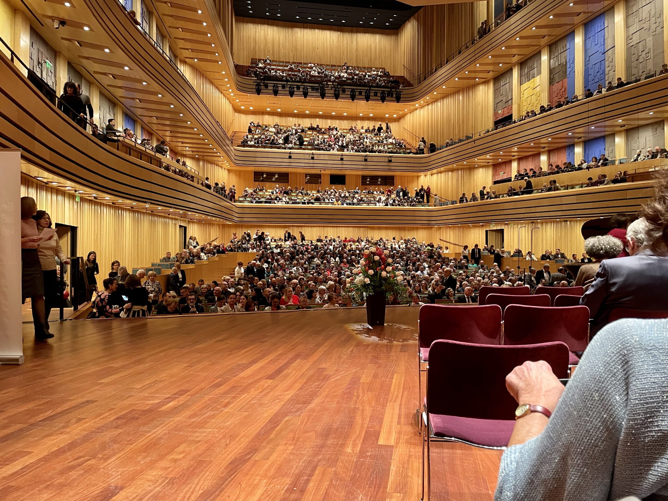 Was shocked when they opened the doors and discovered the seat wasn’t in the choir, it was ON the stage behind the piano. Furthermore I was in the end of the last row with no other seats in front of me. Thankfully they dropped the lights and only the piano was spotted.