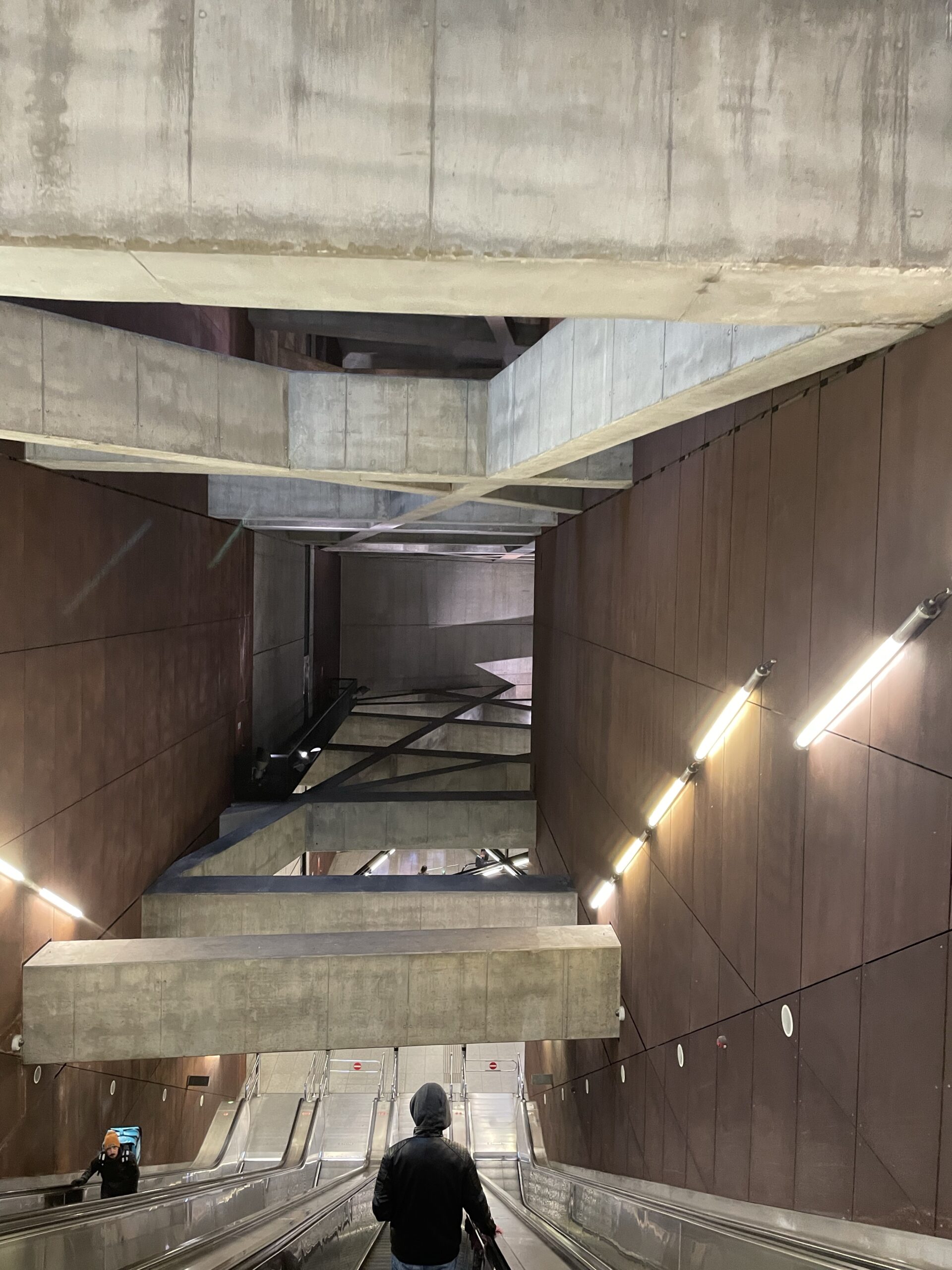 One of the metro lines is buried quite deep. This station features these massive lateral braces. I suspect because it is right next to the Danube.