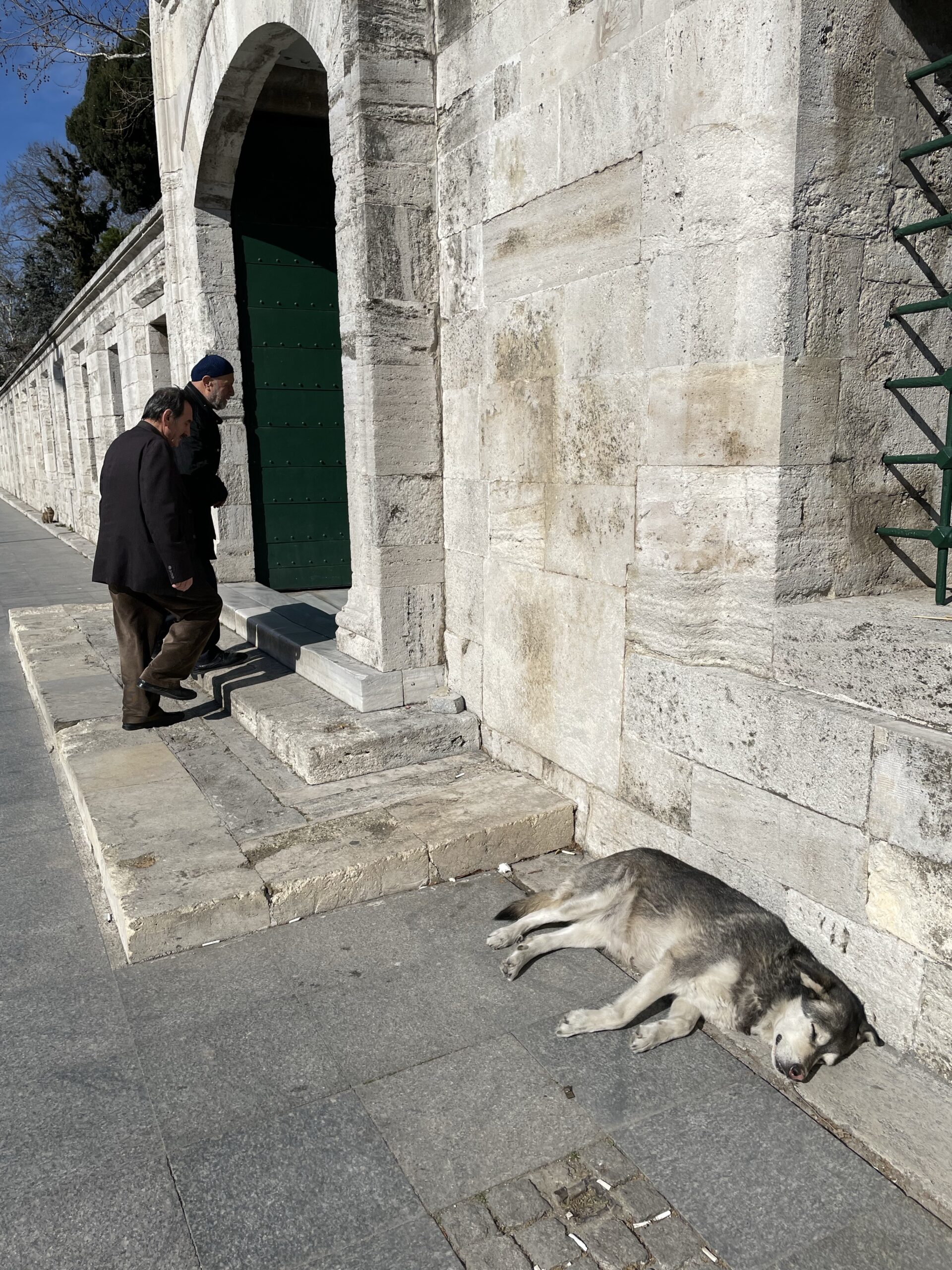Like many places there are community dogs all over Istanbul. All the ones I’ve seen are very well looked after by people in the neighborhood — chubby at the very least. They are all pretty large pups. Many, perhaps all, have ear tags. I assume they’ve been fixed.